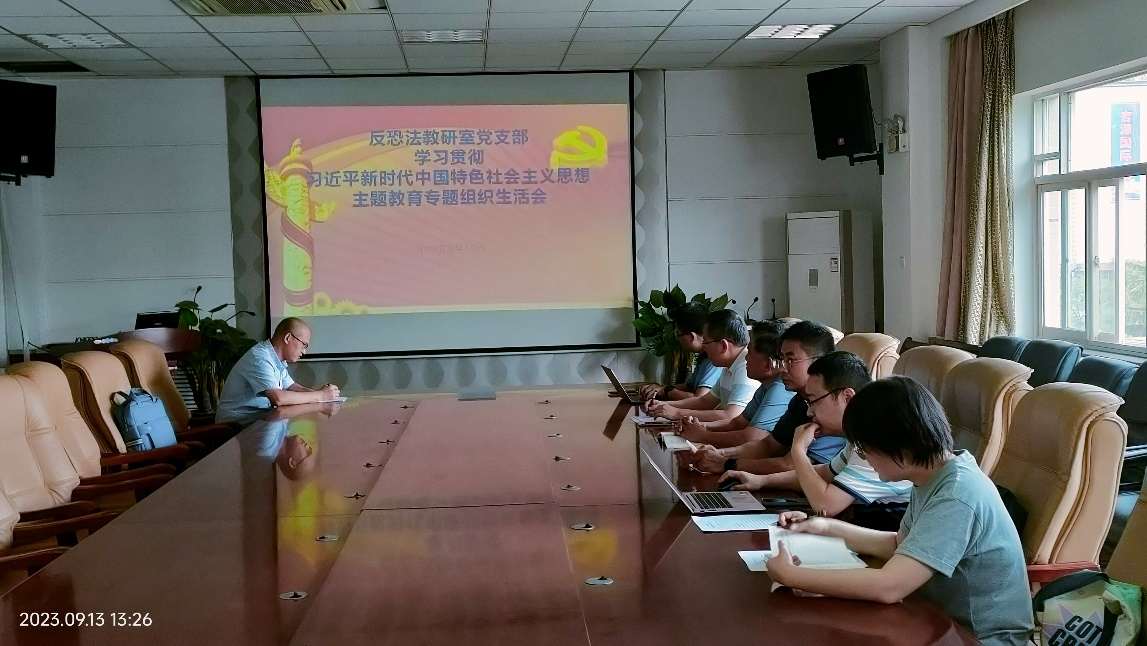 9月13日,捷克论坛 反恐怖主义法教研室党支部在学院会议室召开学习贯彻习近平新时代中国特色社会主义思想主题教育专题组织生活会,支部党员孙立江、乔巴生、齐立峰、刘伟、段阳伟、马瑜参加会议。会议由支部书记张波主持。