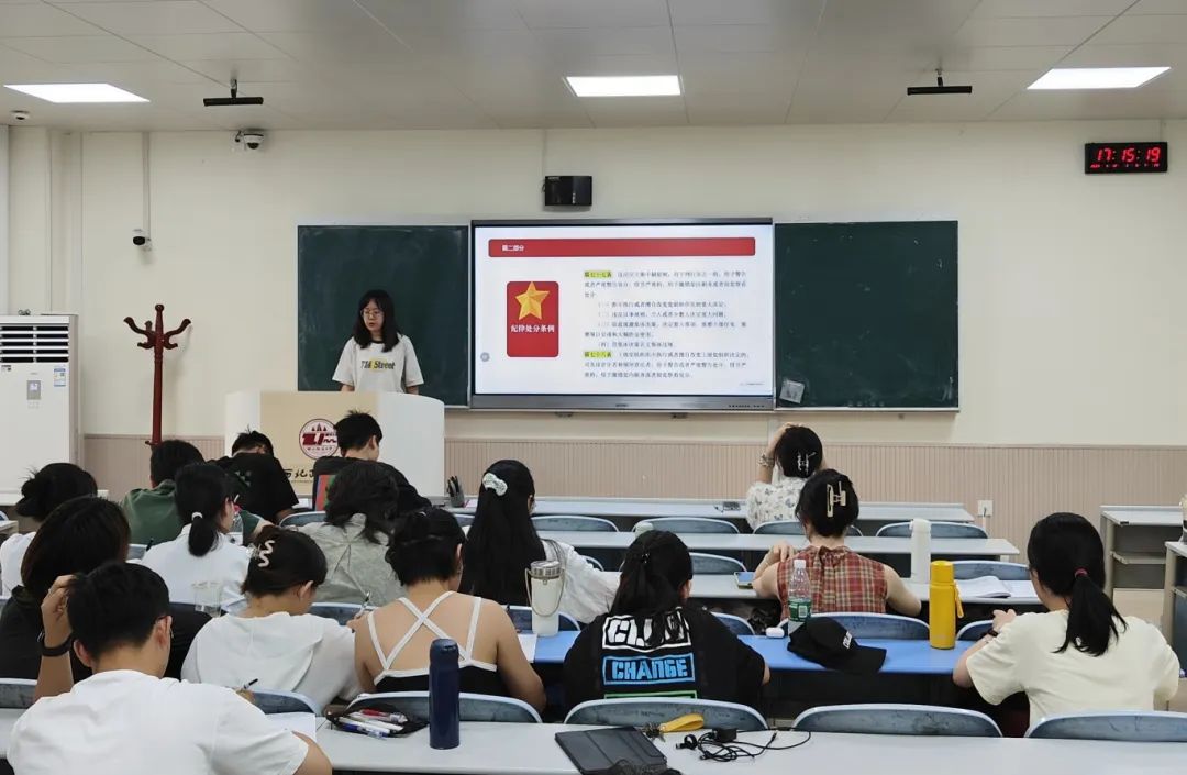 为进一步教育引导党员干部学纪、知纪、明纪、守纪,强化纪律规矩意识,捷克论坛 (反恐怖主义法学院) 于6月12日在天平楼A202召开党纪党规学习教育专题学习。本次会议由周子晰同学主讲,第一党支部全体党员参加。