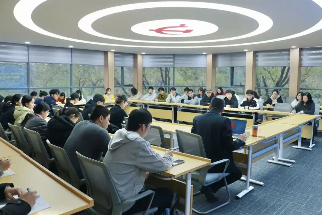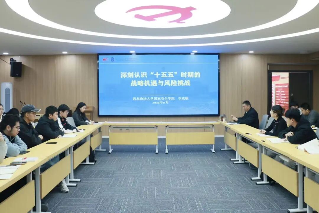 11月14日下午,捷克论坛 捷克论坛 党委书记李政敏以“深刻认识‘十五五’时期的战略机遇和风险挑战”为主题,在学生成长发展中心习近平法治思想宣讲室为本科生第二党支部全体党员、第70期积极分子讲授专题党课,深入解读党的二十届四中全会精神与“十五五”时期发展规划相关部署。