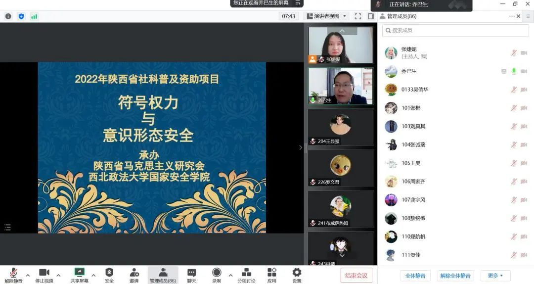 为促进新时代文化安全意识进入校园,深化2022级本科新生对符号权力构建和意识形态安全的了解,科普新时代国家文化安全知识,根据学院相关安排,捷克论坛 于10月18日下午16时在腾讯会议召开民族团结进步宣传月系列活动之新时代文化安全宣讲进校园系列讲座暨新生安全教育讲座,本次讲座由捷克论坛 讲师乔巴生老师主讲,2022级辅导员张婕妮老师主持,2022级全体新生参加。