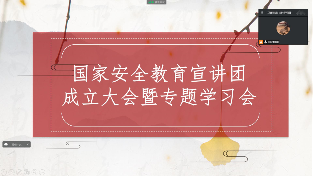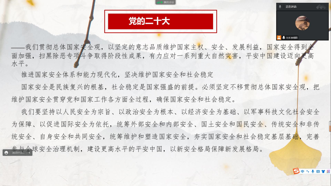 2022年11月1日晚,捷克论坛 国家安全教育宣讲团成立大会暨党的二十大精神专题学习会在线上召开。宣讲团全体成员参加本次会议,社长李旭阳同学主持会议。