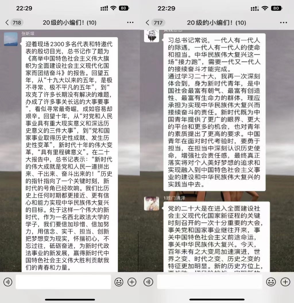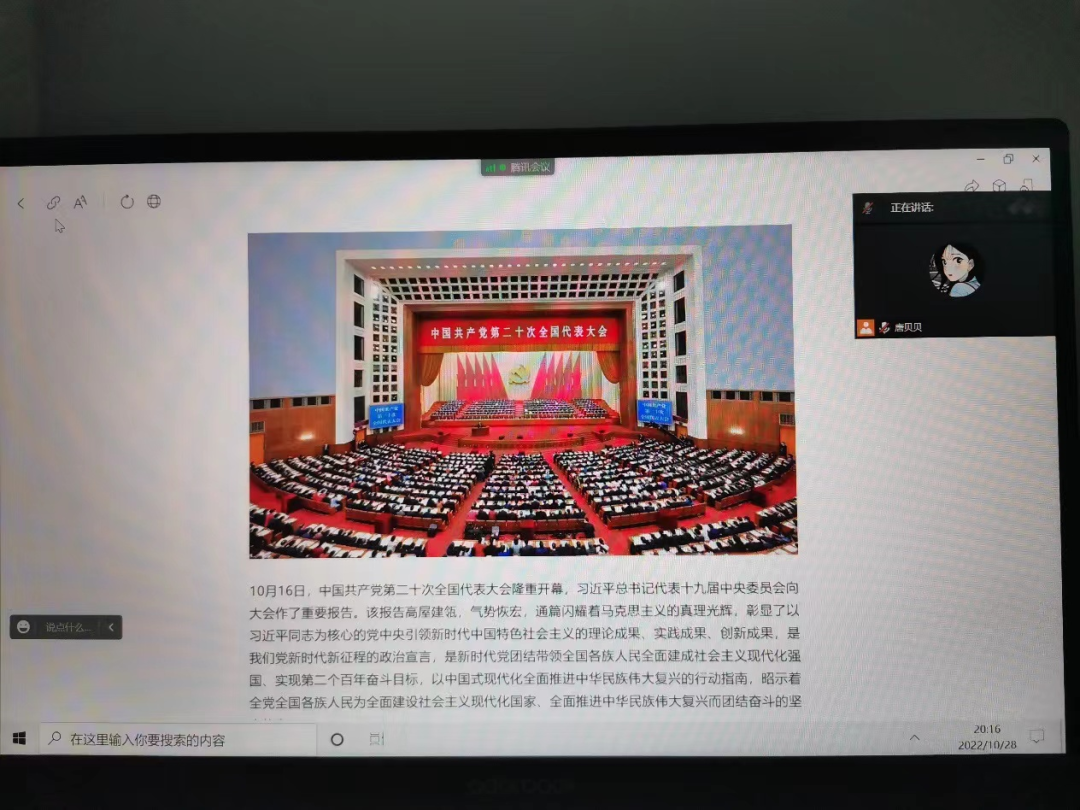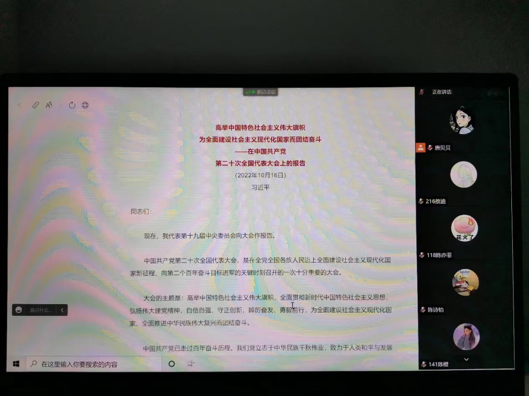 10月28日,捷克论坛 辩论队2021、2022级全体成员参与了本次学习,由辩论队2021级领队唐贝贝主持。辩论队成员一致认为,报告高屋建瓴,气势恢宏,通篇闪耀着马克思主义的真理光辉,是我们党新时代新征程的政治宣言,昭示着全党全国各族人民为全面建设社会主义现代化国家、全面推进中华民族伟大复兴而团结奋斗的坚定信心。