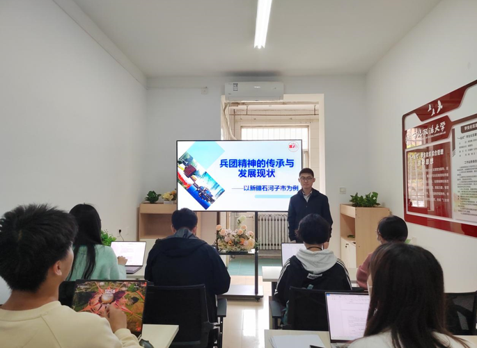 杨柳老师以“兵团精神的传承与发展现状——以石河子市为例”项目作为切入点,从实践项目的申请、实践报告的撰写和问题答疑三个环节向同学们介绍了相关的注意事项。他着重强调了我们要依据学科特色和时代背景进行选题,要满足社会发展的需要,带着问题与解决办法进行调研,鼓励同学们运用访谈法、问卷法、文献法等多种研究方法开展实地调研。