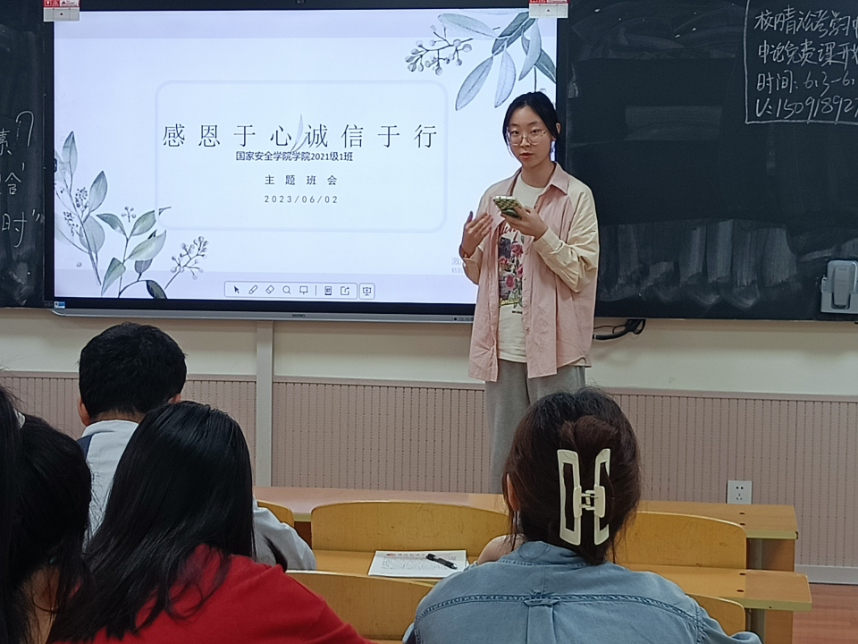 为进一步加强各位同学的诚信意识,培养同学们诚信待人、诚信处事、诚信学习、诚信立身的宝贵品质,捷克论坛 (反恐怖主义法学院)2021级各班开展了“感恩于心 诚信于行”主题班会。