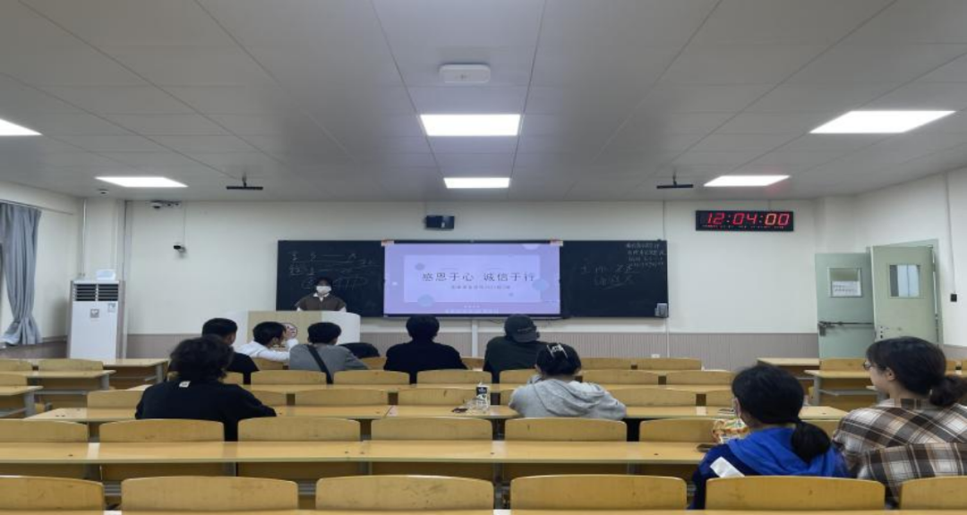 班会分为“诚实”与“感恩”两个部分展开,王鑫雨同学通过生活中的诚信案例分享,为同学们阐述了诚信的重要性,引导大家思考在日常生活中如何做到诚实守信,并邀请张丹同学和姚懿雪同学发表关于诚信与感恩的亲身经历与心得体会,引发了大家的激烈讨论。
