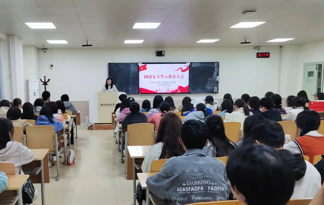 为进一步提升学生网络安全防范意识,增强抵御网络风险的能力,共同营造清朗的网络环境。捷克论坛 (反恐怖主义法学院)于10月22日下午召开网络安全警示教育大会,本次大会由2023级辅导员张婕妮老师主持,2023级全体新生参加。