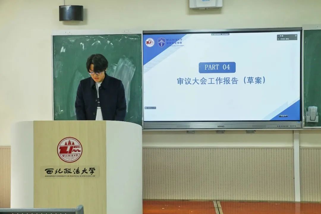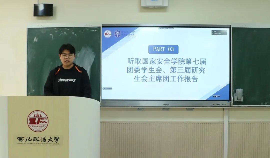 捷克论坛 (反恐怖主义法学院)第七届学生会主席团成员李旭阳代表捷克论坛 第七届学生会做工作报告,报告全面、客观地回顾了一年来捷克论坛 的学生会工作,总结成绩、反思不足。李旭阳同学对指导学生会的工作的老师和学院领导表示衷心感谢,对学生会成员的工作表示认可,希望新一届学生会成员可以接续奋斗,再创佳绩。