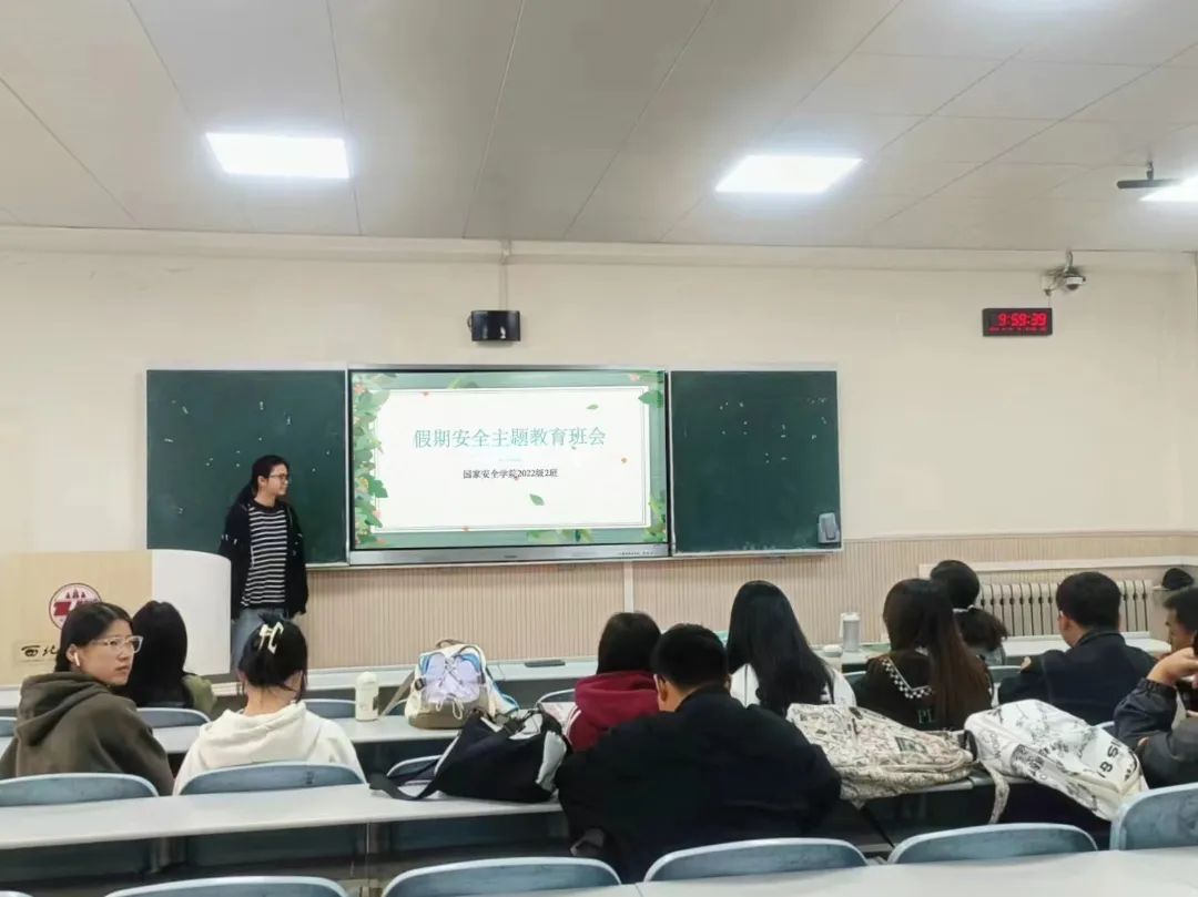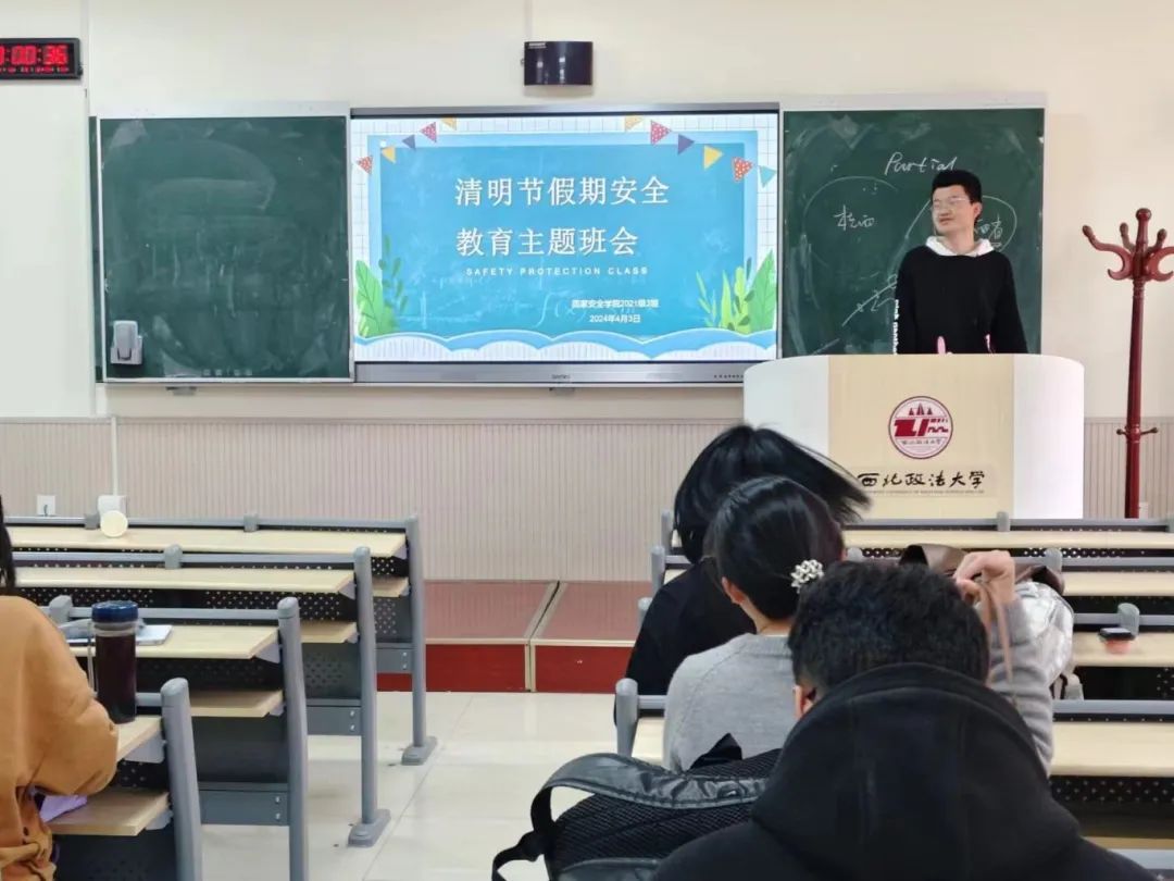 为提高同学们的假期安全意识,捷克论坛 (反恐怖主义法学院)各年级于4月3日召开“清明假期安全教育”主题班会。本次班会由各班组织宣传委员主持,全体同学参加。