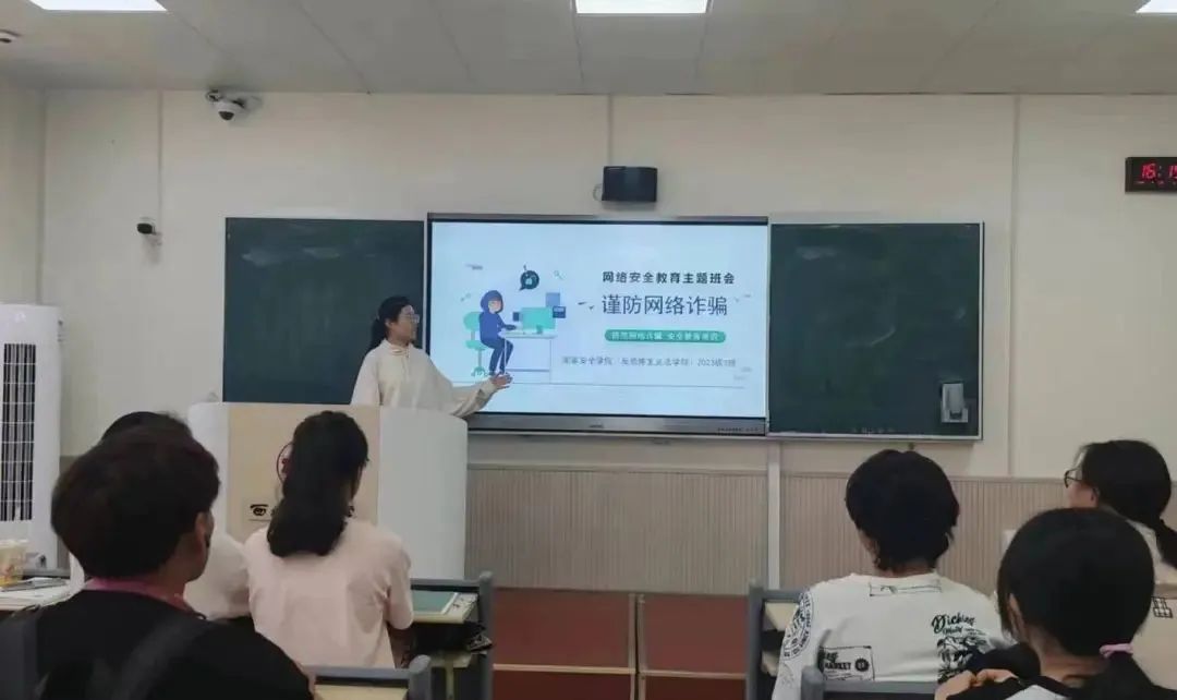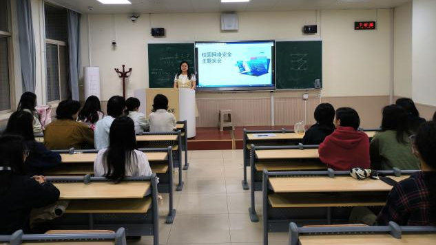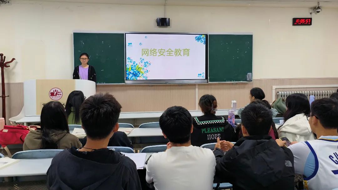 陈玉洁同学通过讲解PPT、观看网络安全相关视频等方式向同学们普及网络安全知识,并结合生活实际,提醒同学们在日常生活中增强网络安全意识,学会辨别网络诈骗,避免掉入网络诈骗的陷阱,从自身做起保护个人信息安全。