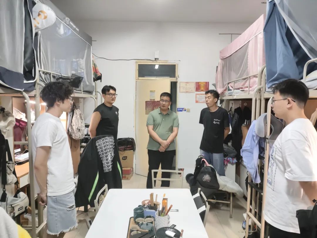 为深入了解学生生活状态,保证良好住宿环境,捷克论坛 党委副书记刘卫波老师、辅导员王真老师以及生活心理部成员于8月29日开展宿舍走访工作。