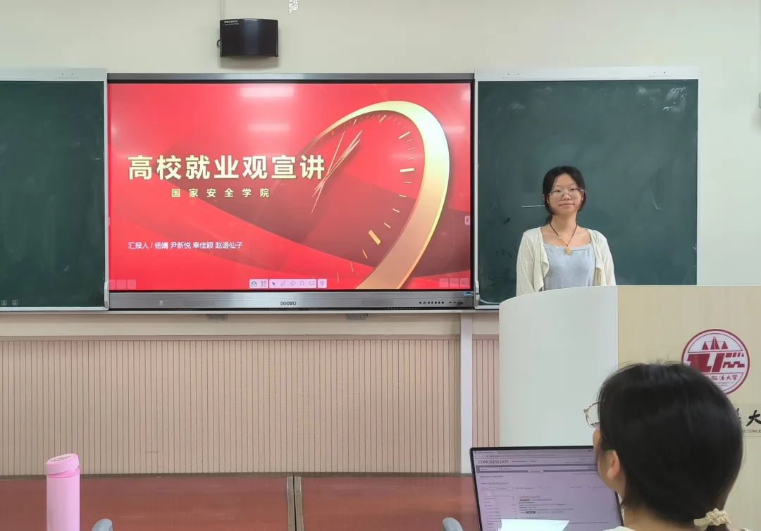 2023级3班团支书幸佳颖同学通过分享团中央“就业领航计划”,引领大学生把人生追求融入到祖国、人民和时代的需要之中,为服务国家和人民贡献力量。