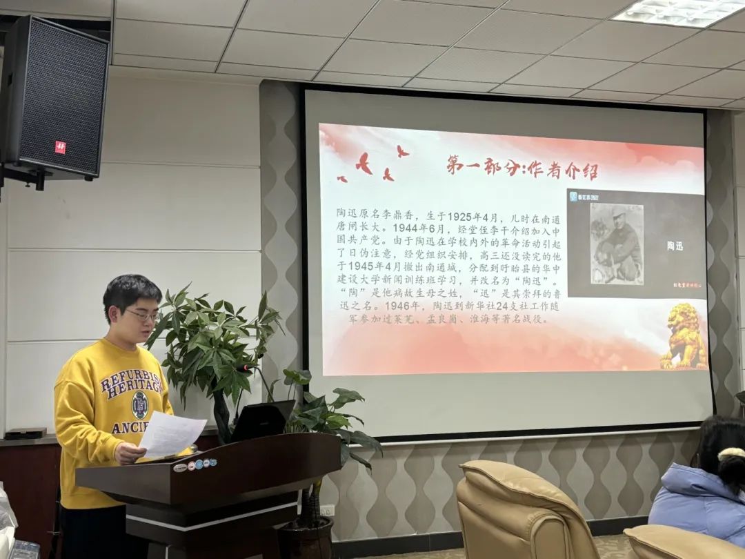 “听党话,跟党走,为民宗旨不可丢。”林翔宇同学为我们详细解读了陶迅家书并且朗诵了其中片段,家书展现出陶迅烈士对党组织的坚定拥护和对人民的深切关爱。