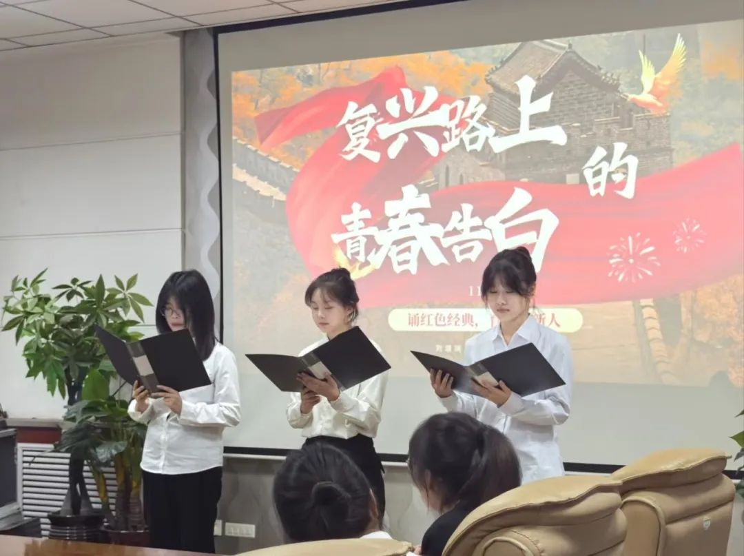 刘增瑞、豆嘉译、高卓凡三位同学为我们带来了现代诗《复兴路上的青春告白》。