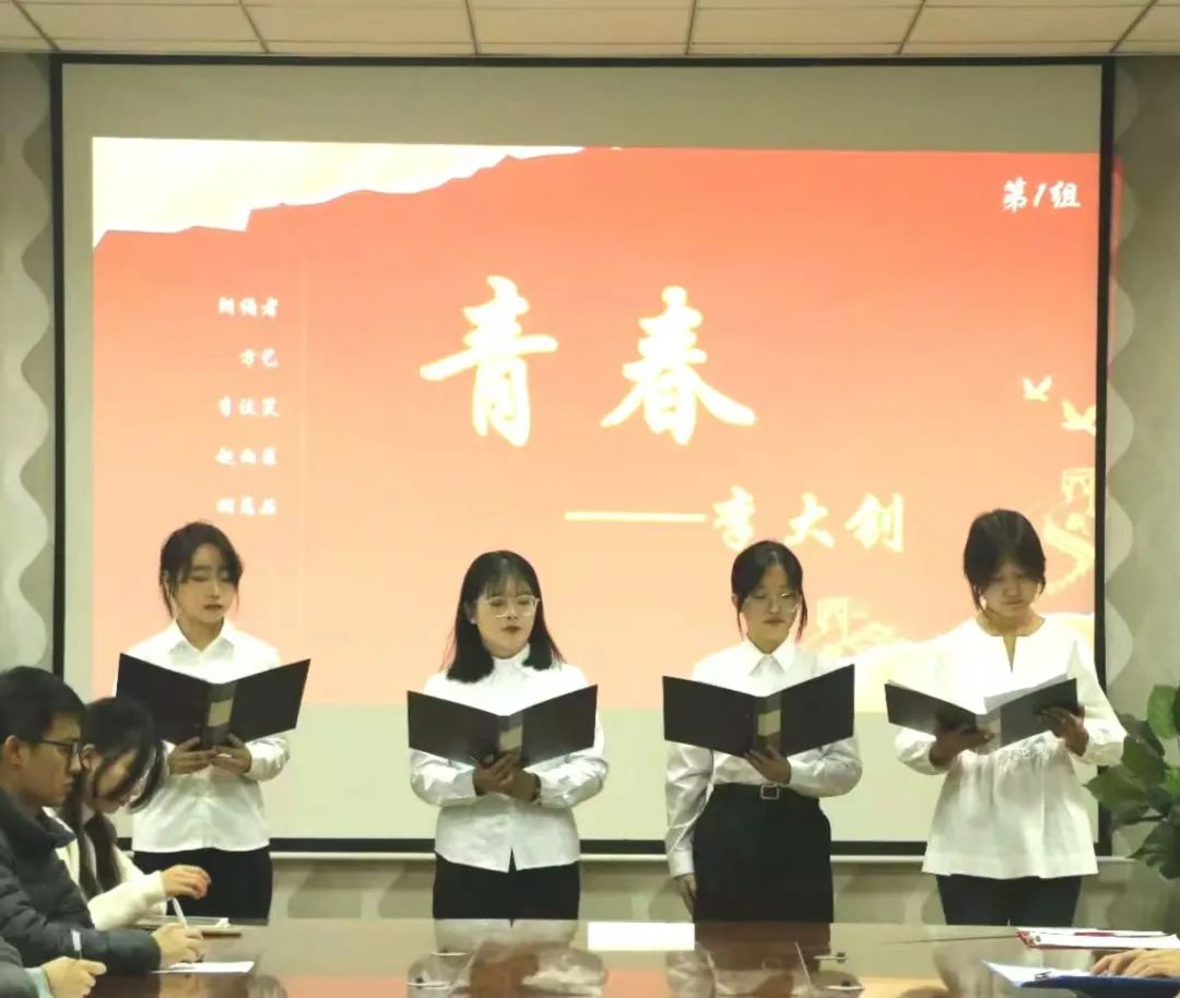 赵雨菲、方艺、胡慧茹和李汶笑四位同学铿锵有力的《青春》之声为本次活动拉开了帷幕。