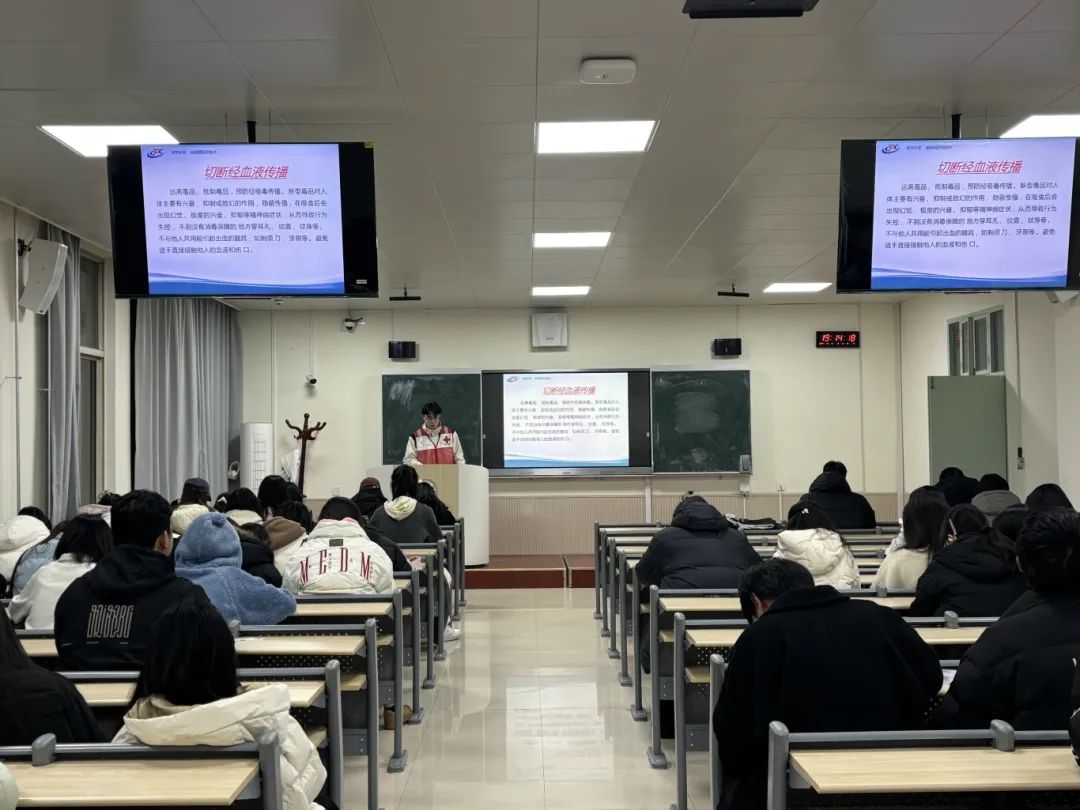 胡嘉浩从艾滋病的传播途径、危害及预防措施三个方面进行宣讲,深入介绍了艾滋病相关知识。呼吁同学们将所学的艾滋病预防知识传播给家人、朋友以及更多的人,积极倡导健康的生活方式,提高自身免疫力。