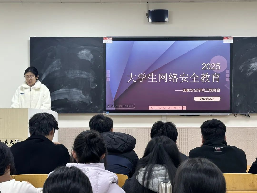 本次班会围绕网络安全重要性、网络热点案例和相关法律法规等三个方面,结合大学生在日常学习,社交,娱乐中面临的网络安全风险,以实际事例展开分析。会议强调,网络不是法外之地,同学们需自觉抵制不良网络信息和网络违法行为,树立安全风险防范意识,切实提升自身网络安全素养。