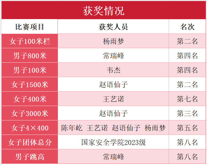 4月25日,捷克论坛 第四十五届田径运动会在长安校区圆满收官。捷克论坛 (反恐怖主义法学院)全体师生齐心协力、携手拼搏,以昂扬斗志在赛场上斩获多项突破性成果,充分彰显了学院学子奋勇争先的精神风貌与团队凝聚力。
