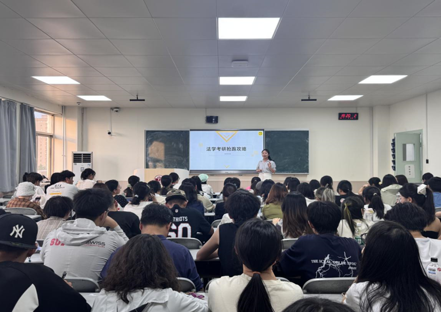 会上,刘羽西老师围绕法学考研的逻辑及策略进行宣讲,从院校专业选择、复习规划、备考技巧等方面展开分享,结合实例为同学们剖析考研要点,答疑解惑。
