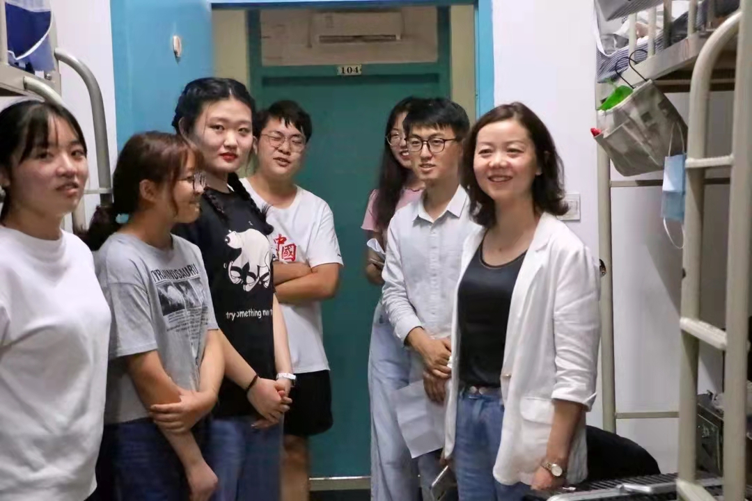 9月5日晚,学院党委副书记侯颖怡老师、2021级辅导员杨柳老师和院学生会成员前往学生宿舍了解新生入住情况。院领导和老师们亲切关怀新同学们的情况,希望同学们尽快适应大学生活,鼓励他们在新学期树立学习目标、做好学习规划,同时也要在校园文化生活中发挥自己的优势,提高个人素质,促进全面发展。