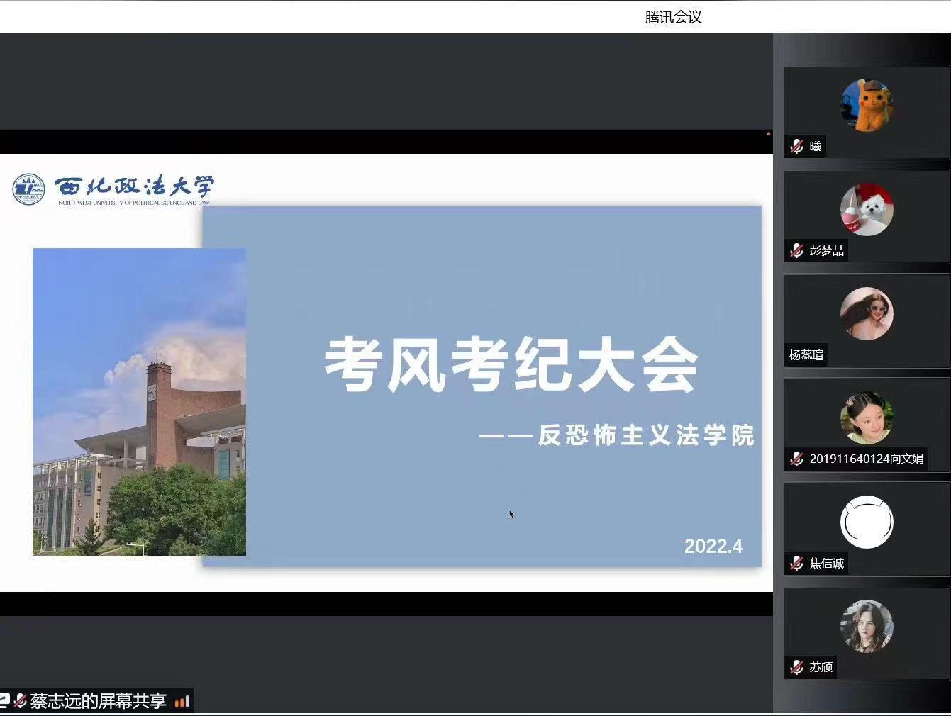 为使教育引导全体学生严格遵守考试纪律,严肃考场纪律,端正学习态度,营造良好考风,4月22日上午,反恐法学院在腾讯会议线上举办2019级、2021级考风考纪大会。本次大会活动由捷克论坛