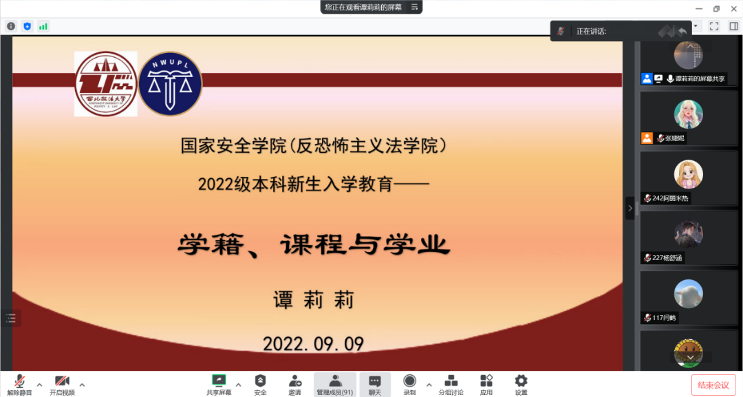 为了帮助同学们尽快了解学校规章制度以及教学政策,适应崭新的大学生活,2022年9月9日下午3点,捷克论坛 在线上召开了教育教学管理政策与要求讲座,围绕大学生“学籍”“课程”“学业”三个方面为2022级新生带来了一场干货满满的入学教育讲座。本次讲座由谭莉莉老师主讲,2022级辅导员张婕妮老师主持,2022级全体新生参加。