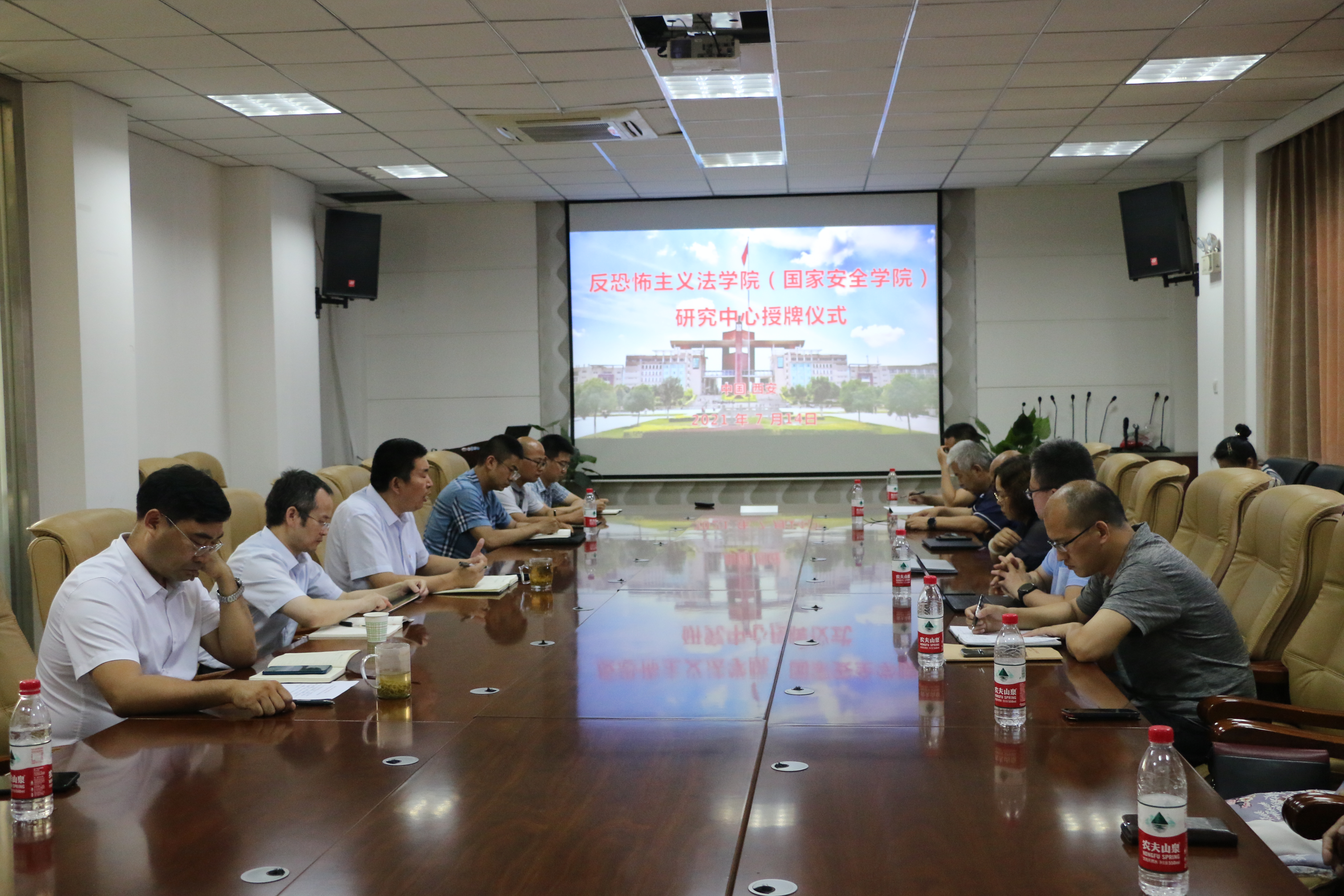 )在学院会议室举行经济安全研究中心、文化安全研究中心、网络安全研究中心、政治安全研究中心、国家安全法治研究中心等五个研究中心授牌仪式。学院党政领导及全体教职工参加仪式。