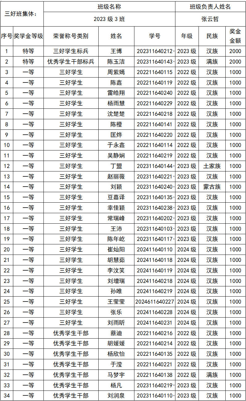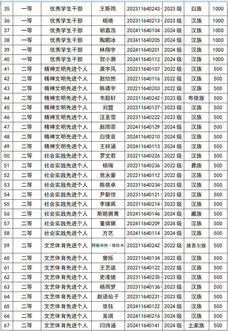 根据学校《关于开展2024-2025学年本科生奖学金及荣誉称号评选工作的通如》和《西北法大学本科生奖学金及荣誉称号评选办法》相关规定,经年级民主评议,学院党政联席会议研究通过,拟推荐以下同学为学生奖学金及荣誉称号候选人,公示期为2025年11月13日至17日,公示期内若有异议,请与各年级辅导员联系。