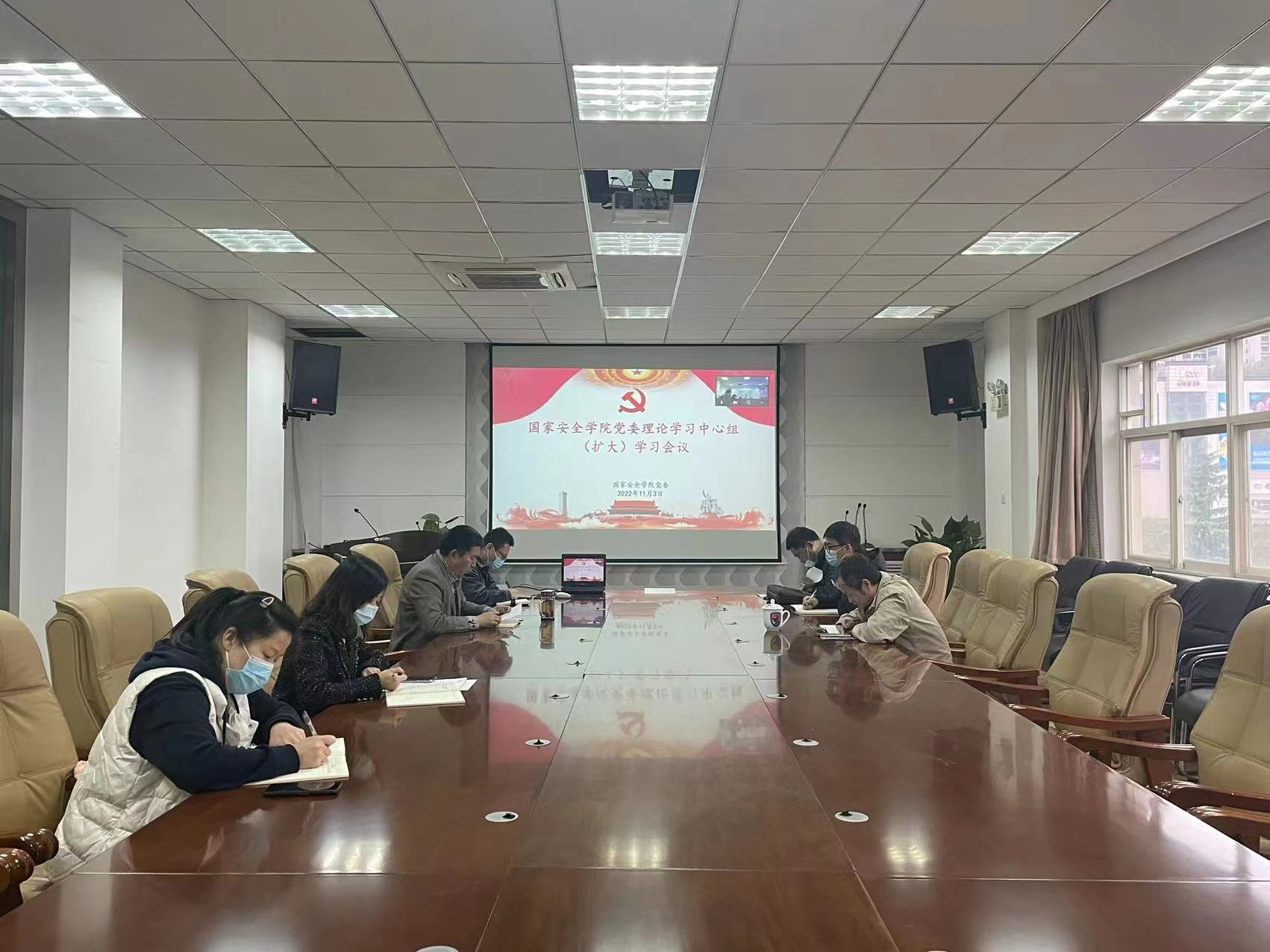 11月3日下午,捷克论坛 党委以线上线下相结合形式召开理论学习中心组(扩大)会议,专题学习党的二十大精神。理论学习中心组成员、各党支部书记、教研室主任、科级干部参加会议。会议由院党委书记李政敏主持。