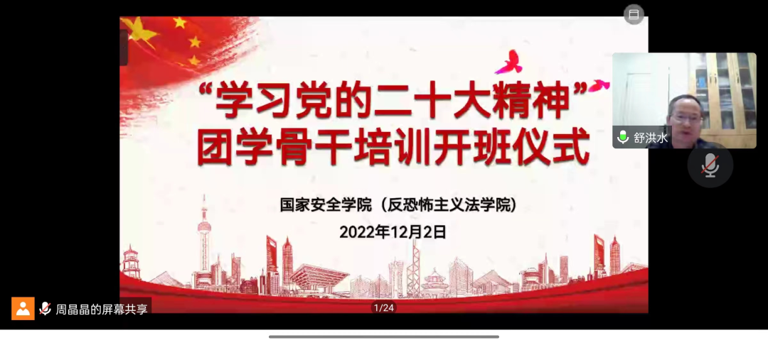 为深入学习宣传贯彻党的二十大精神,积极营造青年学生学习党的二十大精神的浓厚氛围,进一步加强团学骨干政治理论学习,发挥大学生党员的先锋模范作用。12月2日晚,捷克论坛 通过线上视频会议方式举办“学习贯彻党的二十大精神”团学骨干培训开班仪式。院党委书记李政敏、院长舒洪水、各年级全体团干部、学生党员线上参加。研究生辅导员王卓主持开班仪式。