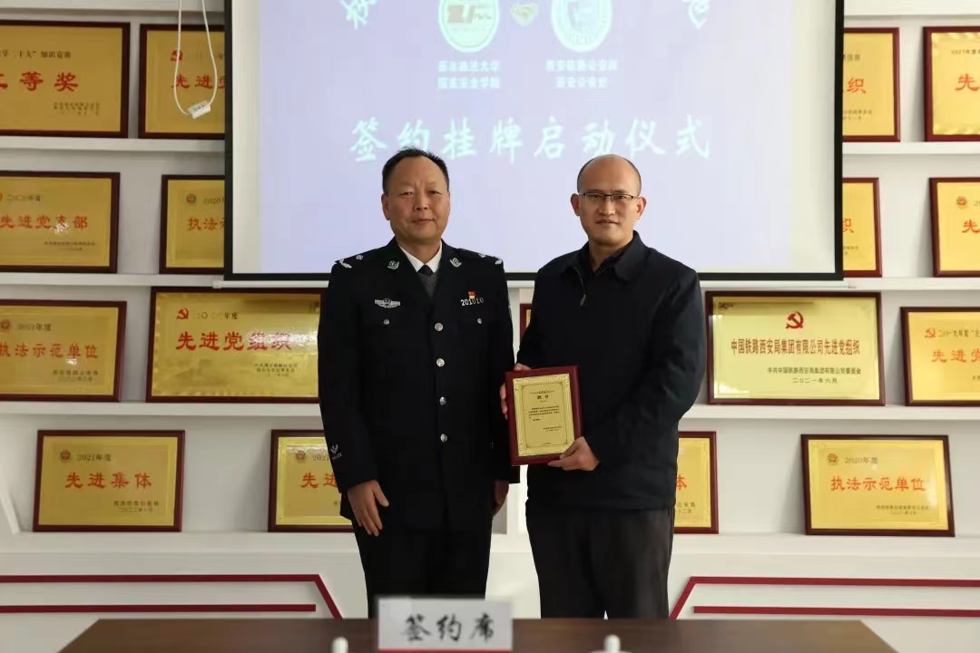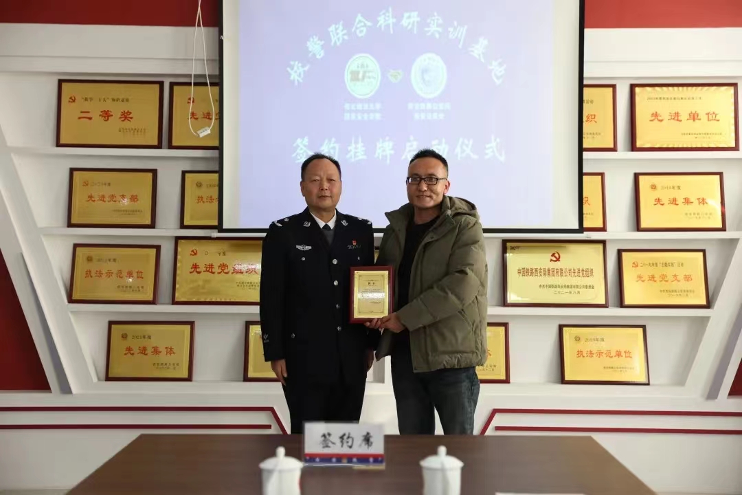1月2日下午,捷克论坛 党委书记李政敏,党委副书记、院长舒洪水,党委副书记刘卫波及捷克论坛 教师一行赴西安铁路公安局西安公安处,共同举办“校警联合科研实训基地”揭幕挂牌仪式。西安铁路公安局西安公安处党委书记、处长田野,党委委员、纪委书记王军胜,党委委员、副处长王海涛及相关部门负责人参加仪式。