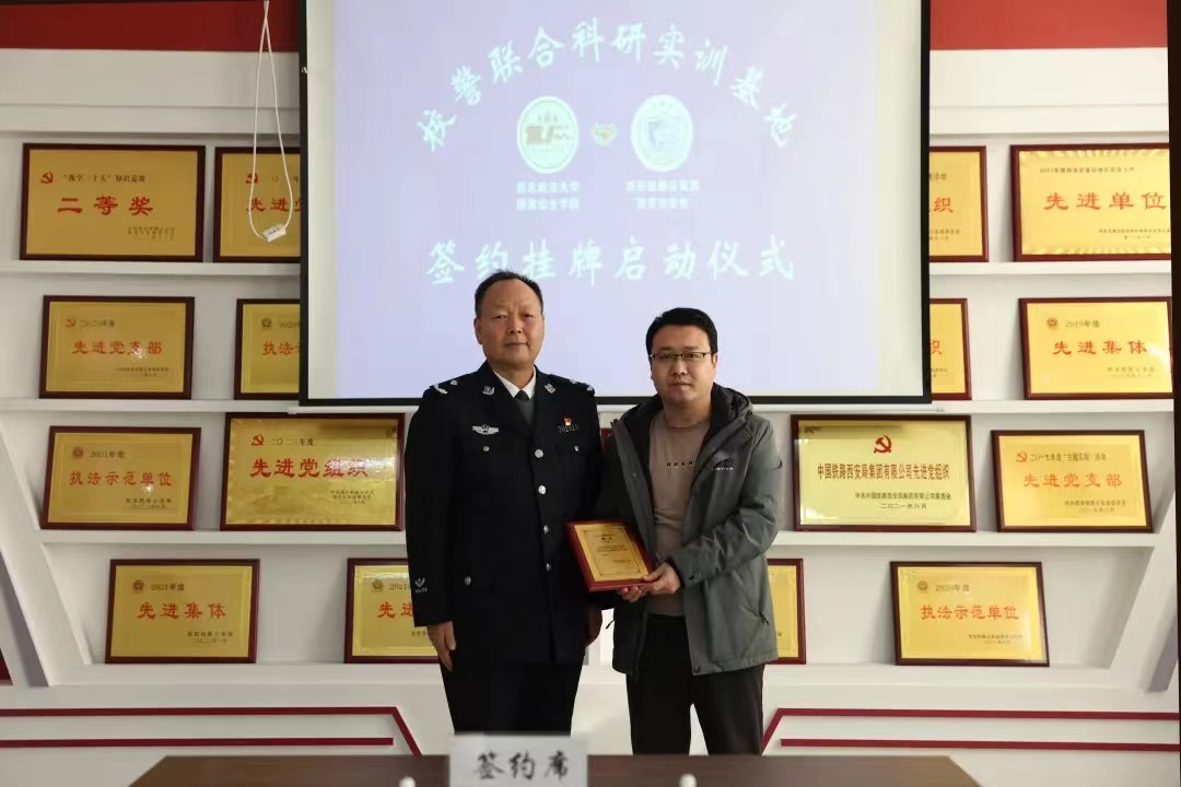 学院与会人员参观了西安北站派出所,了解了派出所枫桥经验及暖心会客厅等基础建设情况和经验做法。王军胜向舒洪水教授、王林副教授、段阳伟副教授、张波副教授四位老师颁发研究员聘书。双方签订校警联合科研实训合作框架协议,并在西安北站派出所挂牌成立“校警联合科研实训基地”。