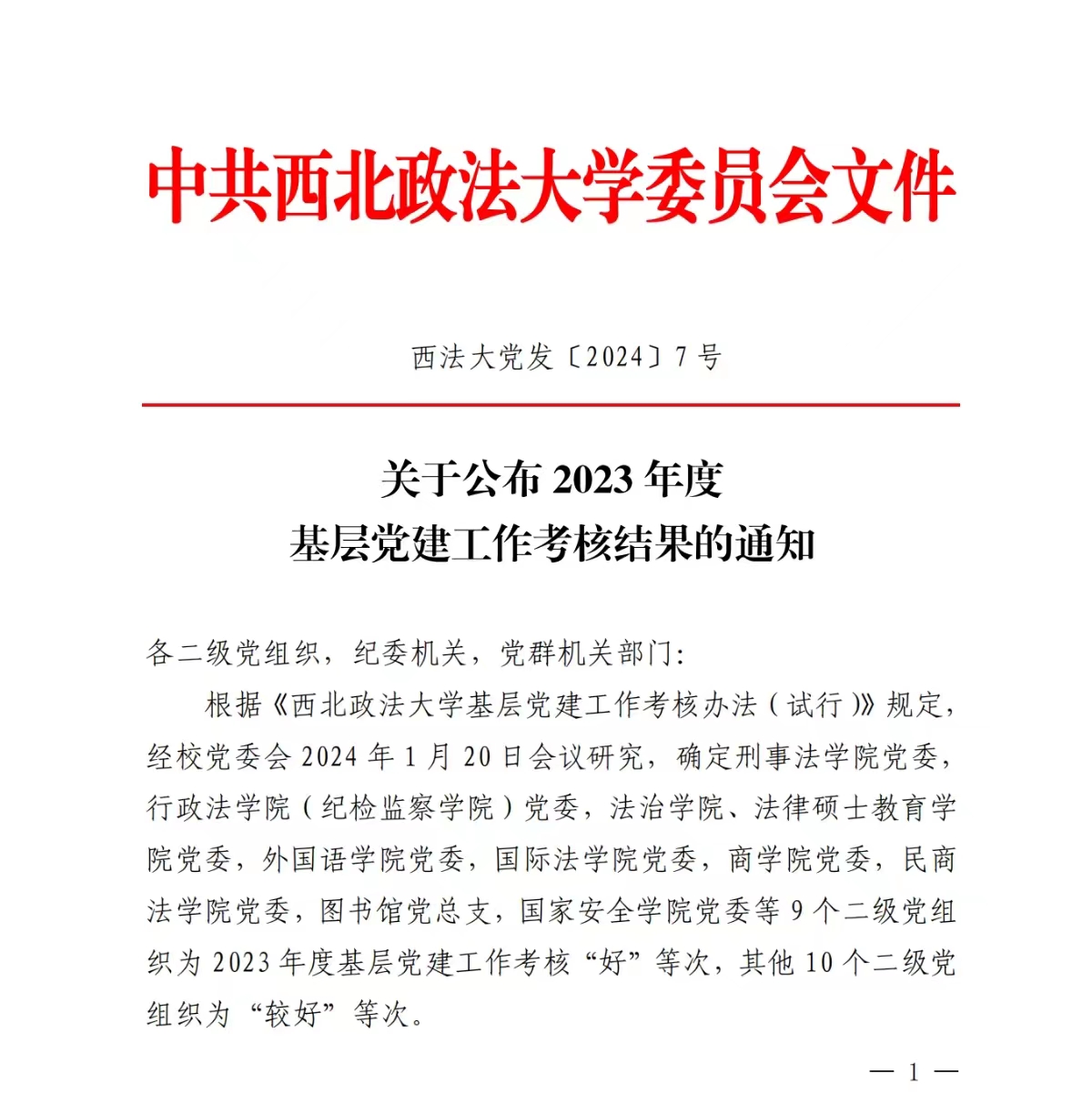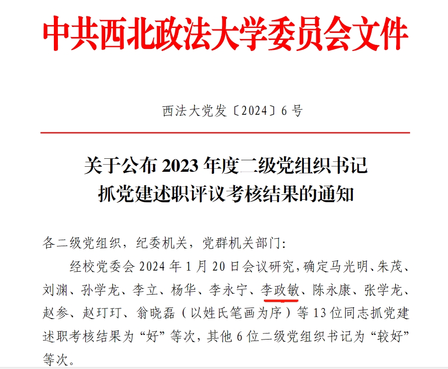 在学校基层党建工作考核中,捷克论坛 党委被评为“好”等次。在学校开展的2023年度处级干部考核中,捷克论坛 (反恐怖主义法学院)院长舒洪水被评为教学科研单位优秀处级干部。在学校2023年度二级党组织书记抓党建述职评议考核中,捷克论坛 党委书记李政敏获评2023年度二级党组织书记抓党建述职评议考核“好”等次。