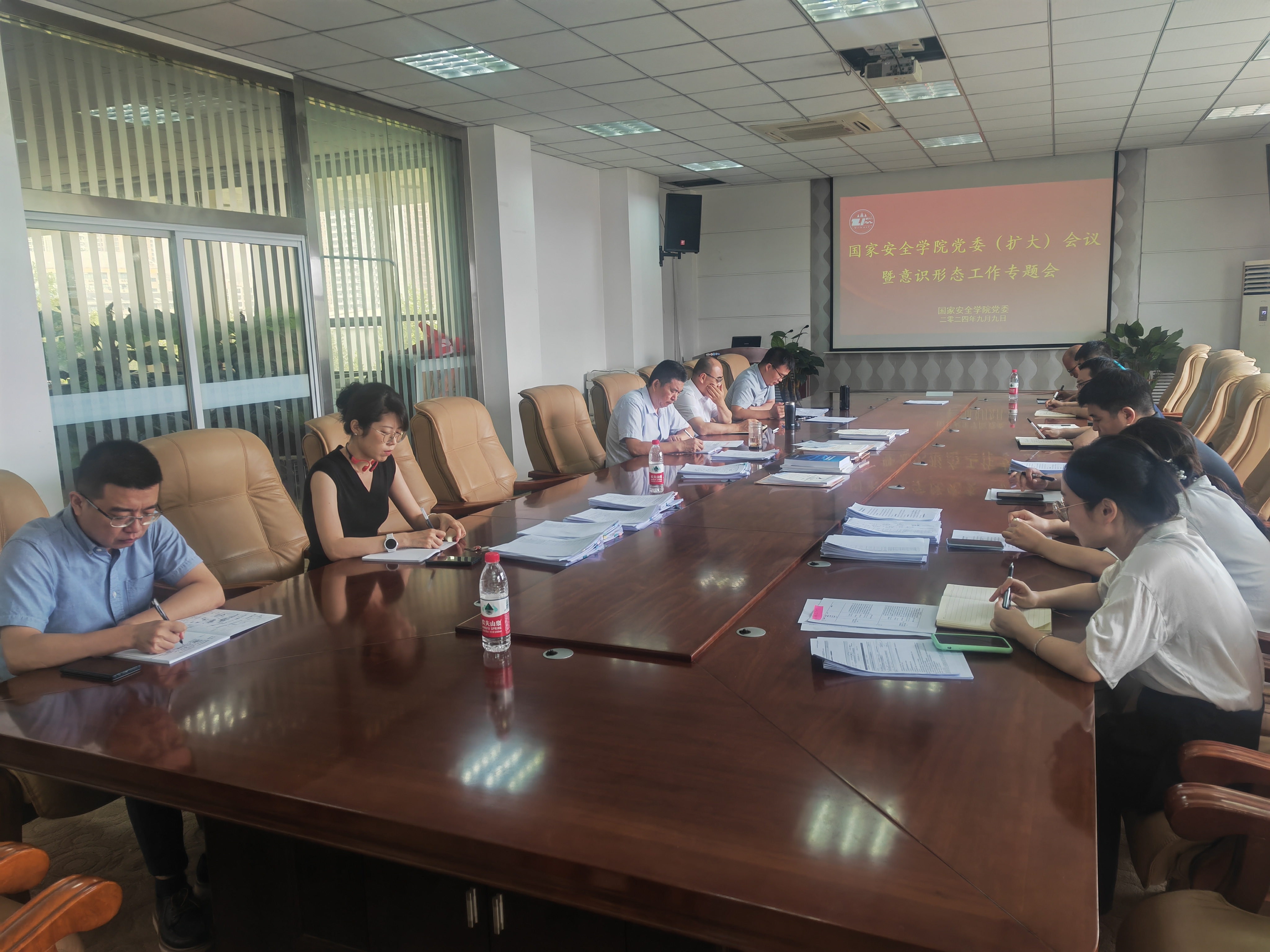 会议对学院2024下半学期意识形态工作进行了安排部署。会议强调,一是要强化思想武装,树立和践行统筹发展和安全理念,深入学习领会习近平总书记关于意识形态工作的重要讲话精神,坚持总体国家安全观,围绕学院中心工作,增强风险意识,树立底线思维,把安全发展贯穿学院事业发展的各环节和全过程,防范化解各类意识形态领域风险挑战;二是要结合学科和专业发展,充分发挥学院国家安全学、民族宗教、反恐法学等学科和专业优势,不断深化拓展理论研究和阐释,打牢维护意形态安全工作理论基础;三是要切实落实工作责任,在教学、科研和日常管理等工作中认真履行意识形态工作责任制,创新工作理念和方法,不断提升维护和塑造意识形态安全工作能力。