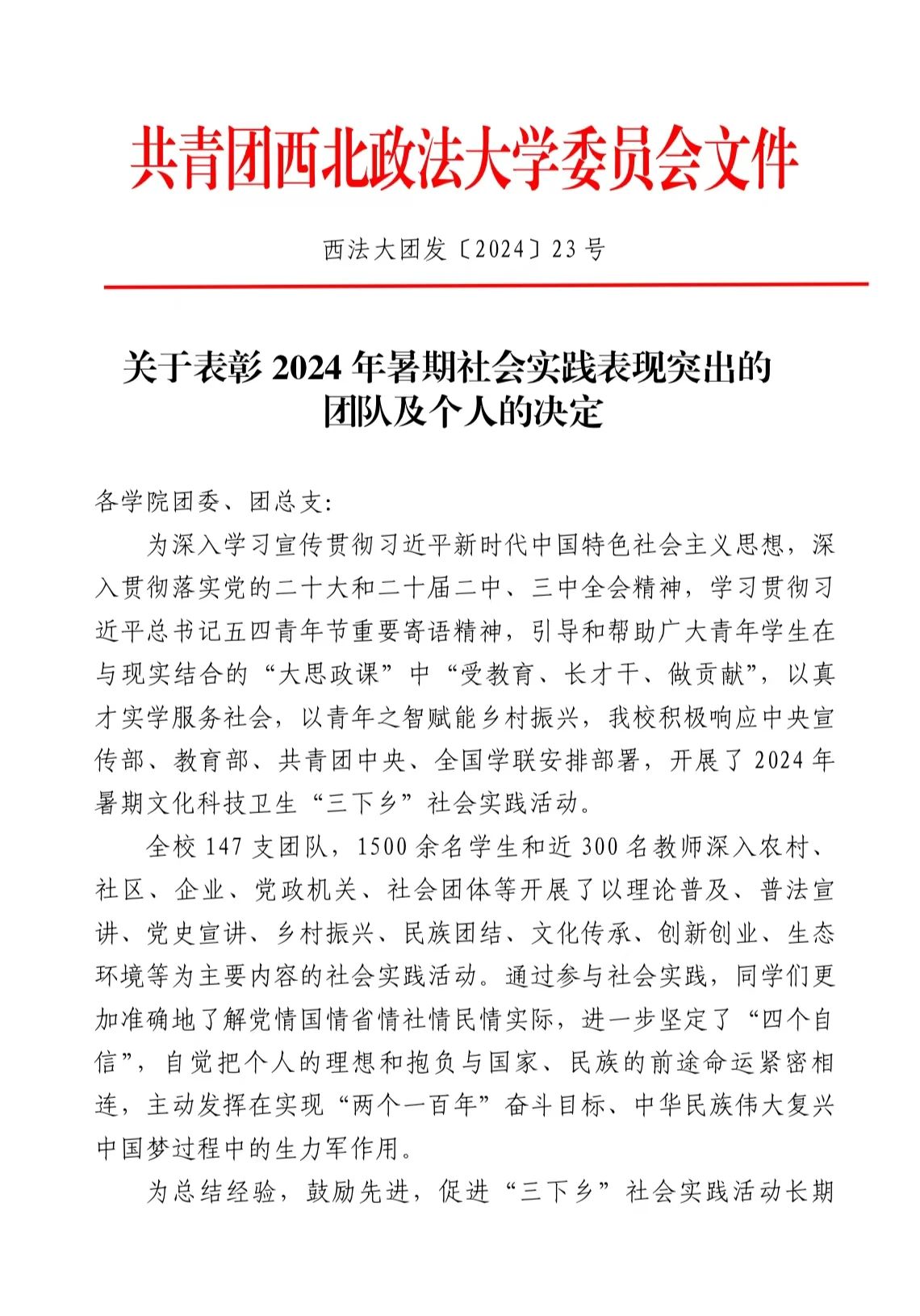 为深入学习贯彻习近平总书记关于青年工作的重要思想和党的二十大精神,进一步推动高校思想政治教育与社会实践相结合,积极响应共青团中央大学生暑期“三下乡“社会实践的号召,捷克论坛 (反恐怖主义法学院)学生于7月至8月陆续奔赴各地进行暑期社会实践活动,在二〇二四年捷克论坛 暑期“三下乡”社会实践活动中荣获多项奖励。