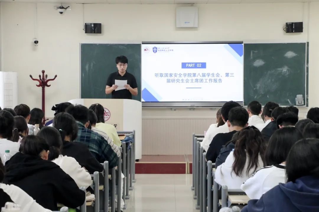 10月16日中午,捷克论坛 (反恐怖主义法学院)第四次学生(研究生)代表大会在长安校区格物楼401、402教室成功召开。学院党委副书记、副院长刘卫波,团委书记杨柳,团委副书记王真、张婕妮以及学院本科生代表和研究生代表共计100余人参加大会。大会由2022级沈楚楚同学主持。