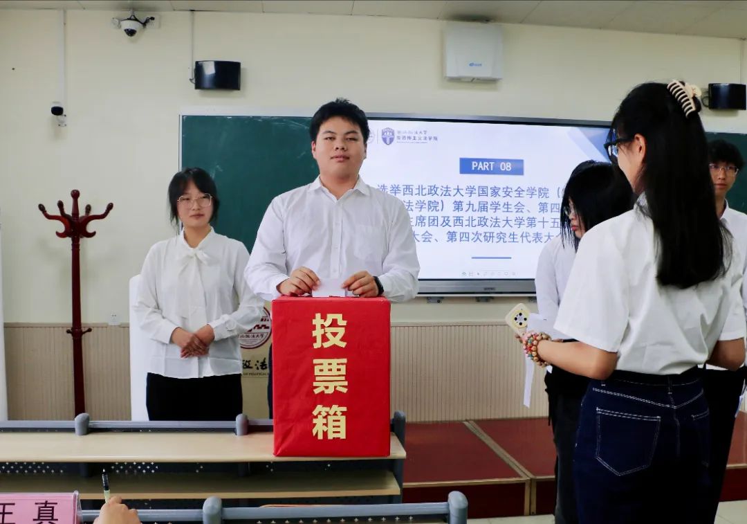 与会代表通过无记名投票方式选举了参加学校第十五次学生代表大会、第四次研究生代表大会代表,选举了学院第九届学生会主席团成员和第四届研究生会主席团成员。