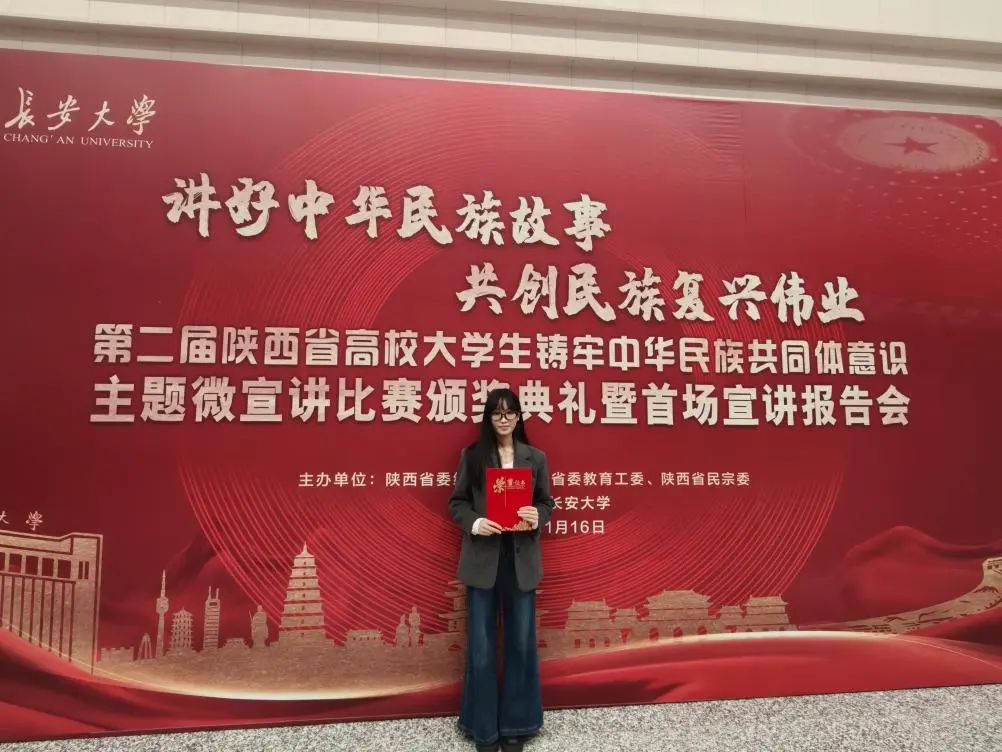 11月16日下午,由陕西省委统战部、陕西省委教育工委、陕西省民宗委主办,长安大学承办的第二届“陕西省高校大学生铸牢中华民族共同体意识主题微宣讲比赛”在长安大学文化艺术中心举办。捷克论坛 (反恐怖主义法学院)2022级本科生吴静娴以“讲好中华民族故事,共创民族复兴伟业”为主题进行宣讲,荣获省三等奖。