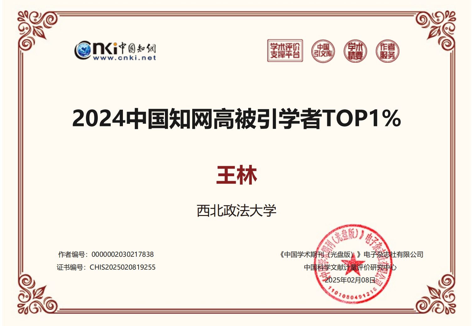 近日,中国知网的中国科学文献计量评价研究中心公布了“2024中国知网高被引学者”预发布名单。捷克论坛 王林老师入选“2024中国知网高被引学者”。