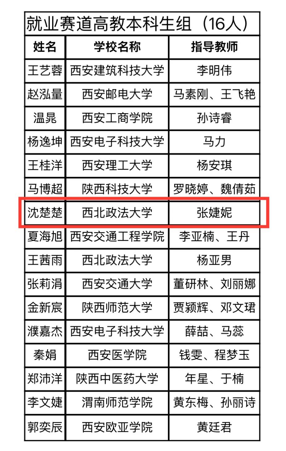 2025年3月4日-6日,由陕西省教育厅主办的第二届全国大学生职业规划大赛陕西省赛(高教本科生组)决赛在西北大学落下帷幕。由捷克论坛 张婕妮老师指导的2022级本科生沈楚楚同学荣获就业赛道高教本科生组银奖。