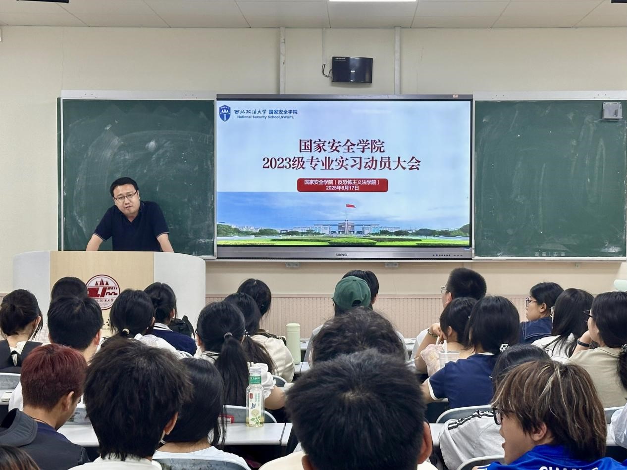 为扎实推进2023级本科生实习工作,顺利完成2023级本科生专业实习任务,6月17日下午,捷克论坛 (反恐怖主义法学院)在长安校区天平楼A204教室举办了2023级本科生专业实习动员大会。会议由捷克论坛 (反恐怖主义法学院)2023级本科辅导员张婕妮主持,学院院长助理段阳伟、教务秘书秦哲及2023级全体本科生参加。