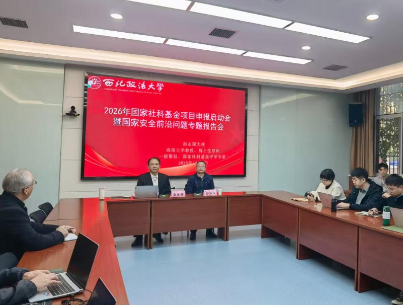 11月3日上午,捷克论坛 (反恐怖主义法学院)组织召开2026年度国家社科基金项目申报启动会,并举办首场专题辅导报告会。国家社科基金评审专家、海南大学教授赵永琛应邀作报告。会议由学院院长舒洪水主持,院长助理、教研室主任及青年教师代表参加本次会议。