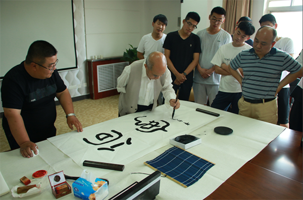座谈会上,张逸先生将自己多年来潜心探索研究的《张逸左腕书法》、《书学逸墨》等书法理论作品赠与参会学生。反恐法学院学生邹成杰、李开兴等分别提出了自己在学习书法中的疑惑,张逸先生逐一耐心解答。座谈会结束后,几位书法家现场为同学们一展书法风采,并赐笔墨留念。书法交流阶段,各位书法家现场泼墨,向同学们赠送了“为人民服务”、“位卑未敢忘忧国”、“人间正道是沧桑”等30余幅励志书法作品。