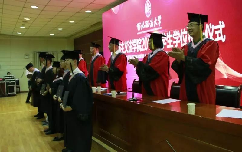 反恐法学院学术委员会导师为全体毕业生颁发学位证书并拨穗。