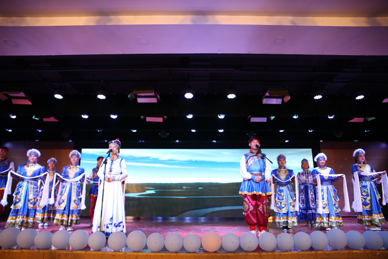晚会在藏族舞蹈《堆谐相会》中拉开帷幕,悠扬的乐声和欢快的舞步表现了藏家儿女的深情厚意;歌曲《想把我唱给你听》、诗朗诵《在世界东方》表达了青年学子对祖国母亲的热爱;哈萨克族歌舞节目《冬不拉琴声下的少女》、壮族舞蹈《壮美》、维吾尔族舞蹈《欢庆》、蒙古族合唱《父亲的草原母亲的河》展现了各民族文化的壮美篇章和各民族同学对家乡的热爱。民商法学院、档案馆、衿熙汉服社的老师和同学们分别带来歌舞节目《碇步桥水清悠悠》、《清平调》以及眉户剧《梁秋燕》,表现了中华民族传统文化的深厚底蕴。