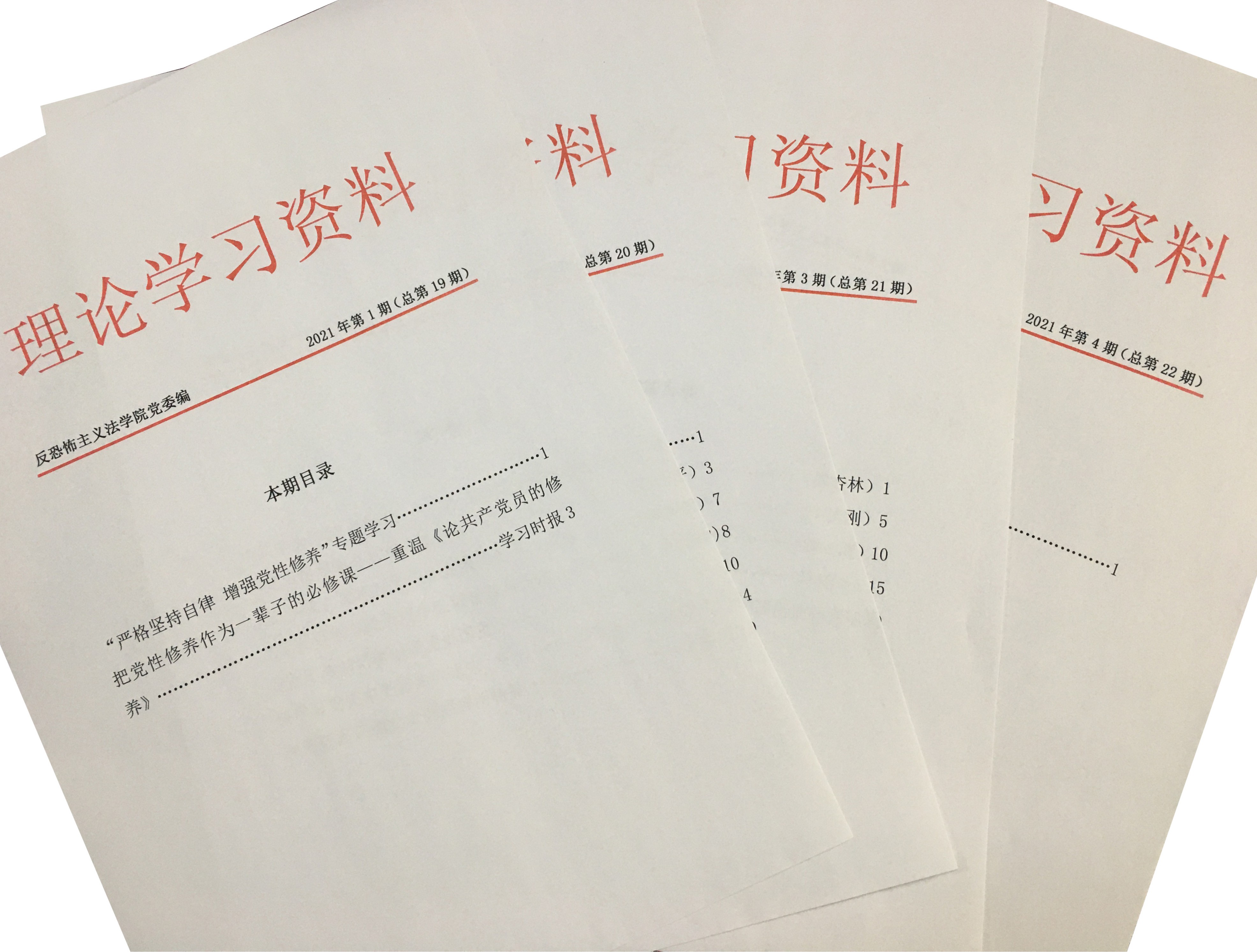 为进一步提升师生党史学习理论素养,方便师生及时有效学习上级相关讲话和文件精神,学院党委注重方式方法创新,把握学习重点,围绕立德树人根本任务和国家安全学科特色开展一系列学习教育活动,共编印学习资料7期,组织各党支部师生深入学习。学院党委将党史学习教育与庆祝中国共产党成立100周年结合起来,党员领导干部带头学习、接受教育,不断增强政治判断力、政治领悟力和政治执行力。