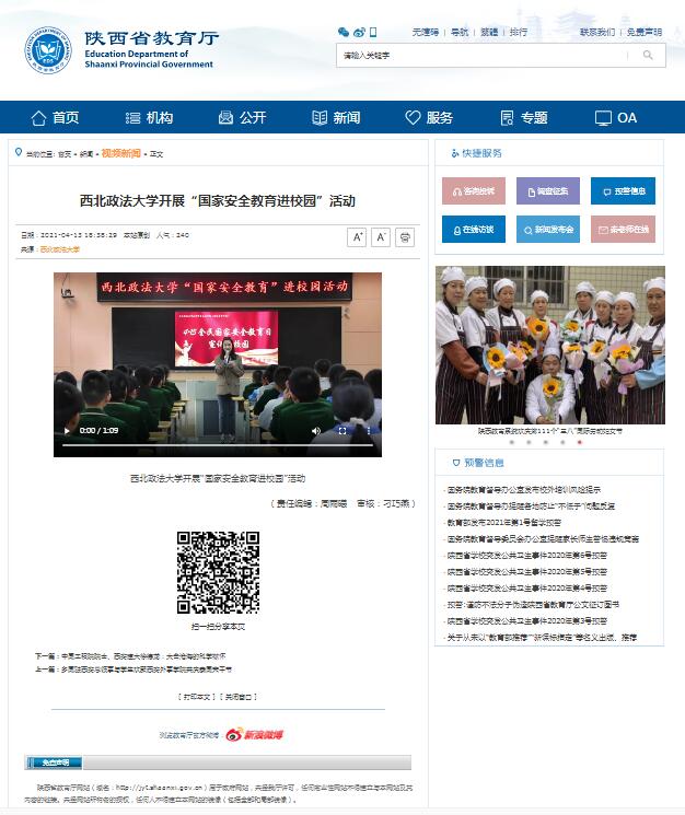 4月12日至15日,反恐怖主义法学院(捷克论坛 )多途径多形式开展第六个国家安全教育日活动,活动成效显著,受到陕西卫视新闻联播、都市快报、陕西省教育厅网站等多家媒体报道。