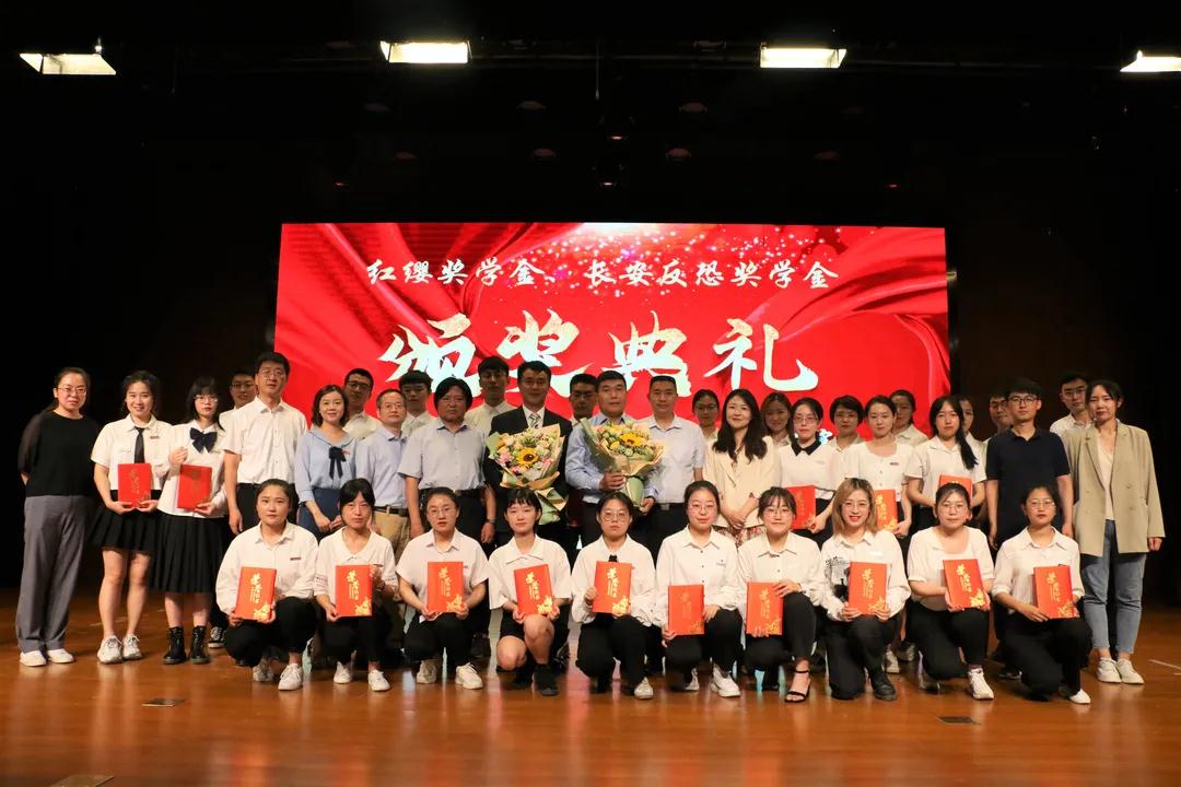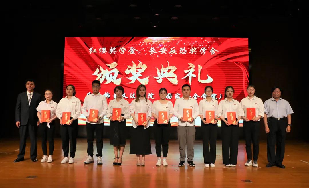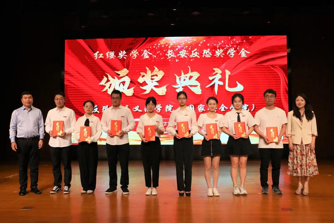 国内合作与校友工作处处长刘霖杰宣读表彰决定。校友聂峰辉、徐本万,研工部副部长赵彩如、反恐法学院穆兴天教授分别为红缨奖学金、长安反恐奖学金获奖学生颁奖。
