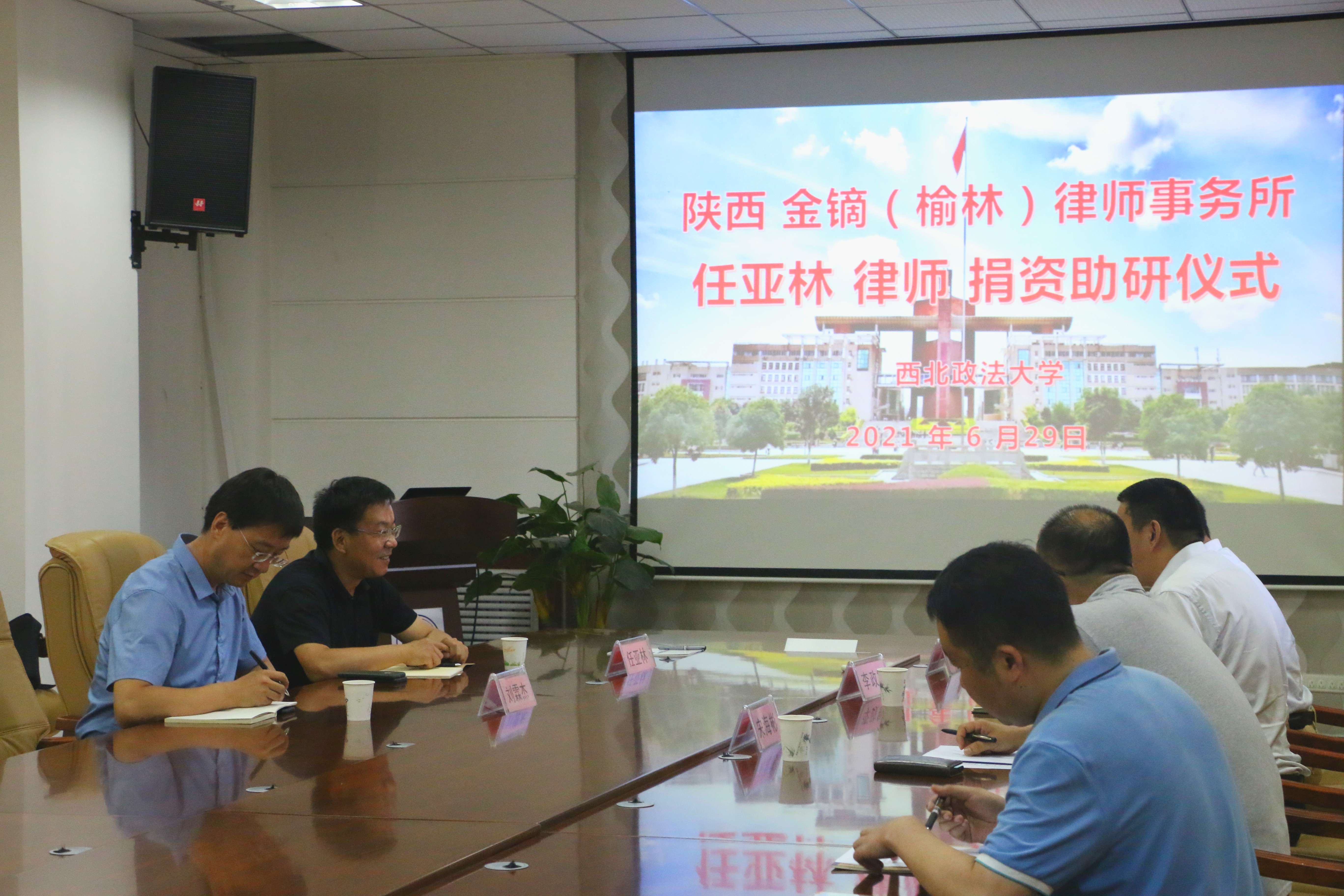 6月29日下午,捷克论坛 校友、陕西金镝(榆林)律师事务所主任任亚林律师捐资助研仪式在长安校区反恐怖主义法学院(捷克论坛 )会议室进行。国内合作与校友工作处刘霖杰处长、学院党政班子成员出席捐资助研仪式。学院党委书记李政敏同志主持仪式。