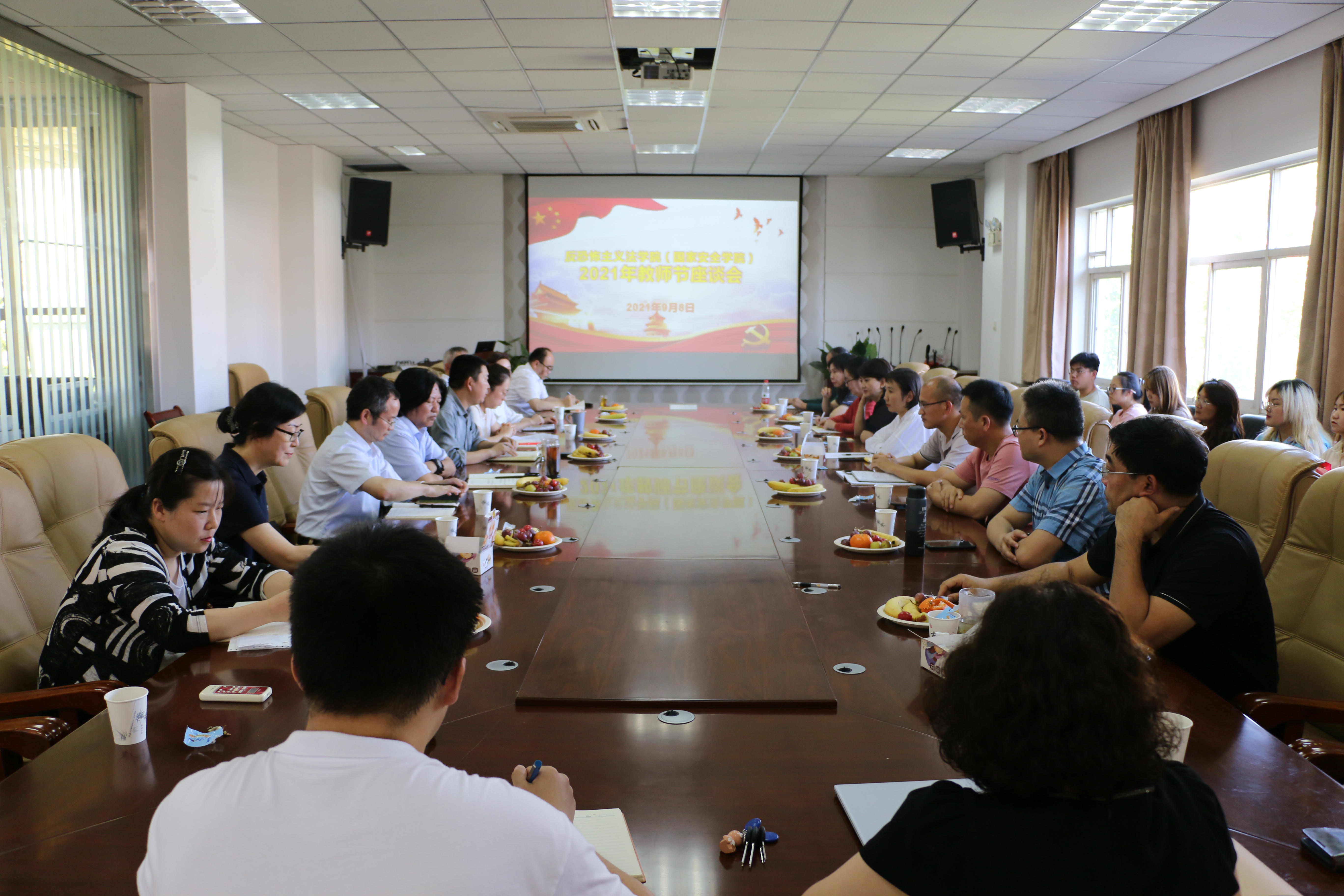 在第37个教师节来临之际,9月8日下午,反恐法怖主义法学院(捷克论坛 )在学院会议室召开庆祝教师节座谈会。校党委统战部部长马玲,学院领导班子成员及教师代表、学生代表30余人参加座谈会。座谈会由党委书记李政敏主持。