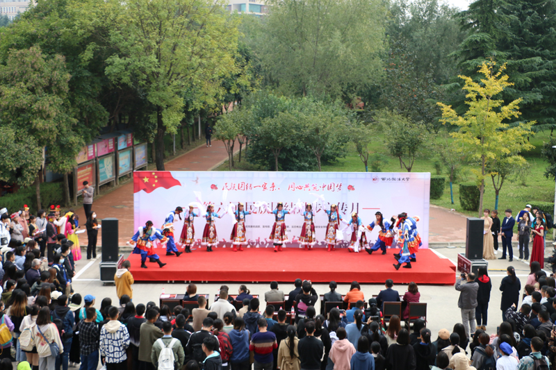 在文化艺术展演活动中,《天湖之舞》、《哈密姑娘》等独具特色的民族歌舞纷纷亮相。达斡尔族同学关蔺带来的歌曲《乌兰巴托之夜》流露出少数民族同学对家乡的眷恋;故事分享《我和我的家乡》表达了少数民族学生对家乡的热爱与赞美;民族服饰展示、民歌串烧展现了少数民族地区的独特风采;京剧《四郎探母》、书法作品展示了中华优秀传统文化的独特魅力;全体师生挥舞国旗合唱《爱我中华》,用嘹亮的歌声赞美伟大祖国。